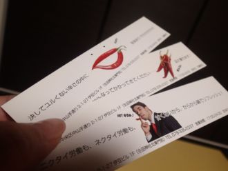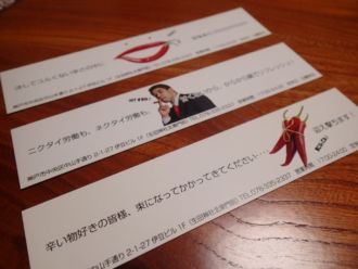 狭いスペースでも置いて頂けるよう変則的な長細い形のフライヤーです。