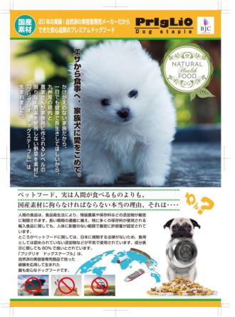 愛犬のための新しいナチュラルフードブランドのチラシ。食事としてのドッグフードを追求したこだわりを表現しました。